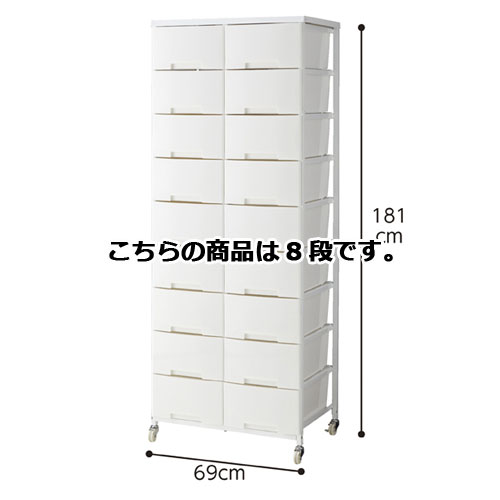 ●サイズ:W69×D48×H162cm●引き出し内寸:W28×D43×H17.5cm●素材・加工:フレーム:スチール製 エポキシ樹脂粉体塗装 引き出し:ポリプロピレン●重量:28.5kg●耐荷重:引き出し:約2kg●組立式●納期について:別送のため多少お時間がかかります。