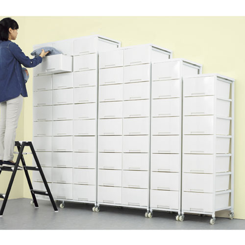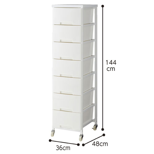 ●サイズ:W36×D48×H144cm●引き出し内寸:W28×D43×H17.5cm●素材・加工:フレーム:スチール製 エポキシ樹脂粉体塗装 引き出し:ポリプロピレン●重量:14.5kg●耐荷重:引き出し:約2kg●組立式●納期について:別送のため多少お時間がかかります。